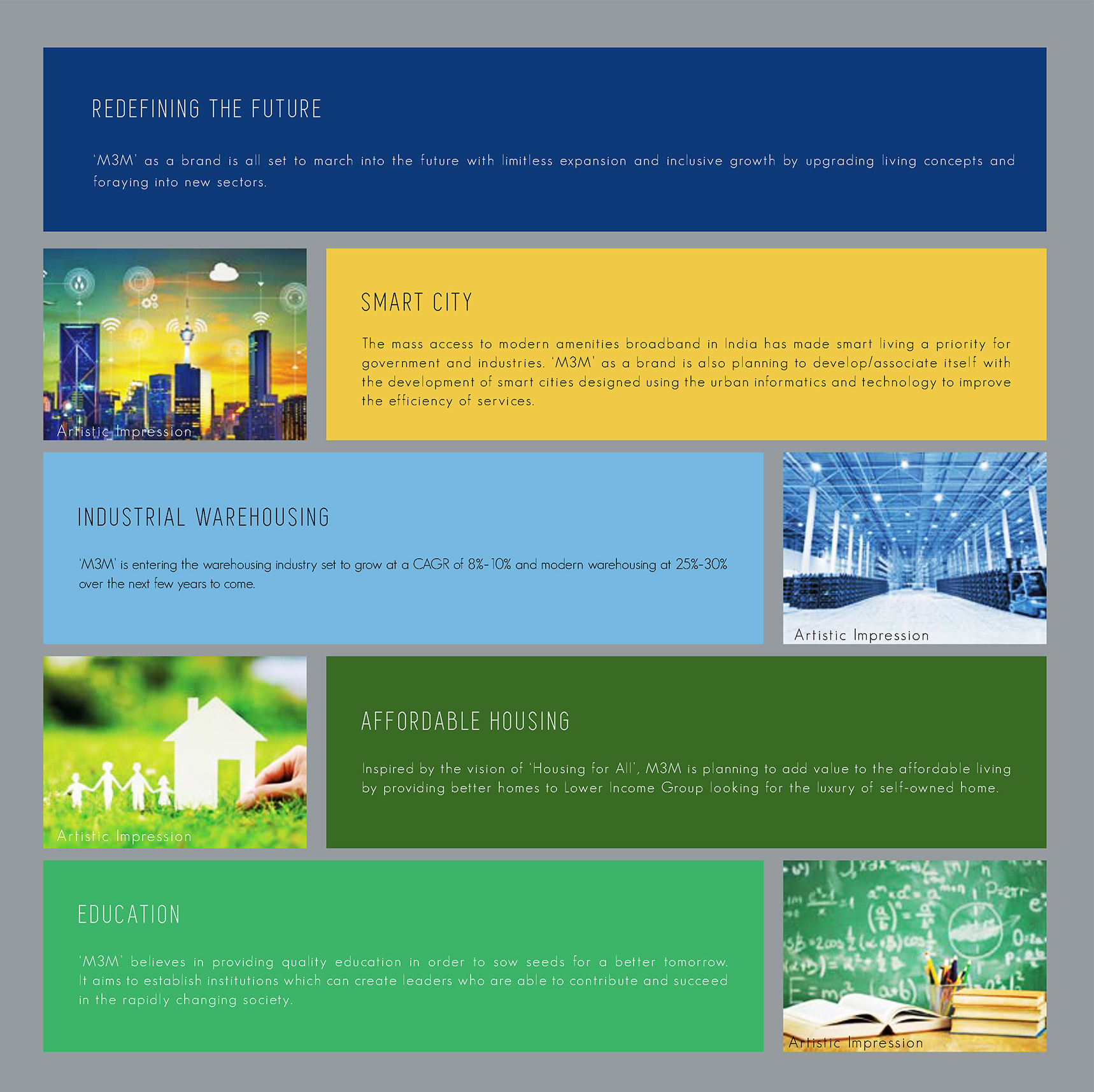 Disclaimer:- Welcome to M3M Line (“Website”). The contents of this website are for general informational purposes only. By using or accessing this Website and/or the hyperlinks embedded/ mentioned in the Website you agree to abide by the terms and conditions, as set forth herein and as contained in the Website without any qualification or limitation. In the event you do not accept/ agree to the terms of this Disclaimer, you are requested not to use the Website or download materials from the Website. Every endeavor has been made to keep the information updated. However, we make no representations or warranties of any kind, express or implied, about the completeness, accuracy, reliability, suitability or availability with respect to the Website or the information, products, services, or related graphics contained in the Website for any purpose. The Website and all its content are provided on an “as is” and “as available” basis and is intended for informational purposes only. No information given under this Website shall be treated as a warranty or representation by us. Your use of the Website is solely at your own risk. This Website is for guidance only. It does not constitute part of an offer or contract. The contents, including design and specifications are subject to change without prior notice. Computer generated images are the artist’s impression and are an indicative of the actual designs. By using and/or accessing this Website, you, the viewer/user acknowledge that the information including any material/ documents (such as brochures and marketing collaterals) on this Website are solely for informational purposes and you have not relied on this information for making any booking/ purchase/ intention to purchase/ invest in any project(s) of M3M Line and/or its affiliates. Nothing herein shall be construed as any invitation, or offer for investment or deposit within the terms of the applicable law (as amended from time to time) including without limitation SEBI Act, 1992, Companies Act 2013 etc. and we shall not be liable for any consequence of any action taken by the viewer relying on such material/ information on this Website. The particulars contained on the Website mention details of Projects/ developments undertaken by M3M Line and/or its affiliates. The contents are being modified in terms of the stipulations/ recommendations under the Real Estate Regulation Act, 2016 and Rules made thereunder (“RERA”) and accordingly may not be fully in line thereof as of date. Use of information shall be governed by Indian laws, RERA; subject to jurisdiction of Competent Authority under RERA, courts at Gurugram/ Haryana India. You are further advised to verify all the details, including area, amenities, services, terms of sales and payments and other relevant terms independently with the sales team independently, subject to prior appointment during working hours and speak to one of our sales staff, prior to concluding any decision for buying any unit(s) in the said project. In no event shall M3M Line, its affiliates, employees, directors and/or officers be made liable for any claim as a result of any inaccuracies in the information provided in this Website, though all efforts have to be made to ensure accuracy and under no circumstances shall we be liable for any expense, loss or damage including, without limitation, indirect or consequential loss or damage, or any expense, whatsoever arising from use, or loss of use, of data, arising out of or in connection with the use of this Website.